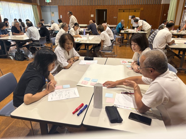 夏休み初日の24日(木)に「丘の子サポーター(丘のみちしるべ、クラブ、学習支援、丘の子YOU遊の各スタッフ、および地区の役員さん達)」のみなさんにお集まりいただき、交流会を開きました。今年は『(竜丘の)子どもたちの将来にとって、竜丘地域(の大人)がどのような地域(姿)であるとよいだろうか』というテーマで意見交換を行いました。子どもの立場になって考えたり、今の自分にできることを振り返ったりすることで、不思議と笑顔になり、活力がわいてくるように感じられた方が多かったです。地域の大人が元気になることで、子どもたちの元気な姿につながることもありそうですね。