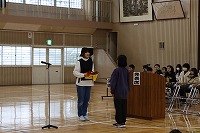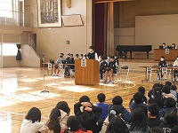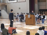 2月4日(火)、児童総会がありました。今年度のまとめとなる児童総会。3年生から6年生までが参加し行いました。各委員会から今年度の活動報告と来年度へ向けての要望等が発表されました。質問、意見の場面では各委員会に10名ほどが発言しようと並び、代表者が質問、意見を発表しました。「きらりの活動はよいと思うので続けてほしいが、来年度はあるか。」という質問や、「イラストコンテストは楽しいので、来年度も続けていってほしい。」等の意見が出されました。それぞれの質問意見に対して堂々とした委員長の回答がありました。その後、5年生に役員が引き継がれ、総会が終了しました。来年度もよい児童会を作っていってくれるだろうと感じさせる、素晴らしい会になりました。