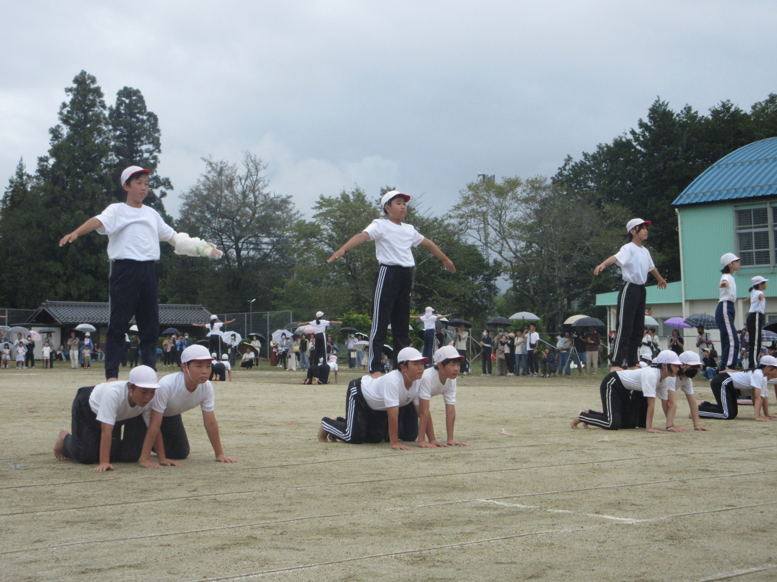 20日に運動会を開催しました。途中、何度か雨のため中断されましたが、なんとか予定されていた種目は全て実施することができ、子どもたちの体力面での成長ぶりや、重ねてきた練習の成果をご覧いただけたかと思います。保護者のみなさま、地域のみなさまには、傘をさしながらも、拍手や声援での応援ありがとうございました。